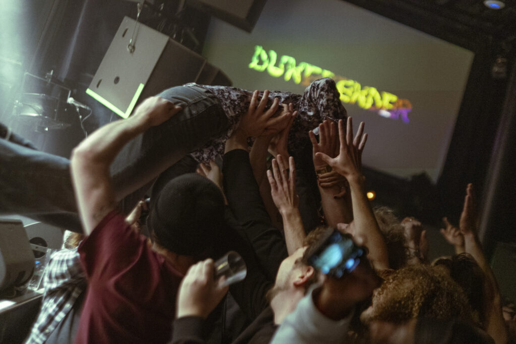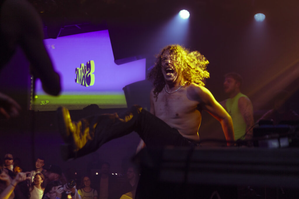 En dan is het tijd voor wedergeluid: SKINC zet de zaal op stelten met een energieke HIIT (High Intensity Interval Training) sessie die iedereen vanaf de eerste seconde wakker schudt. Een samensmelting van donkere elektronica, brute pophooks een verslindende frontale energie. Hooks als “mijn naam is niemand en niemand is gelukkig” en “ketamine, geld verdienen” worden uitbundig mee gezongen door het mee springende publiek.